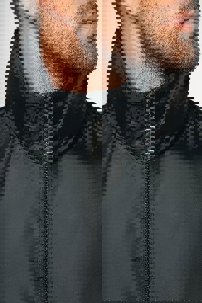 100% polyester. Capuchon in de kraag met klittenbands. 2 voorzakken met rits. Aanrijgkoord aan de...meer
