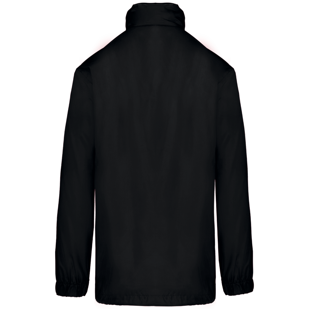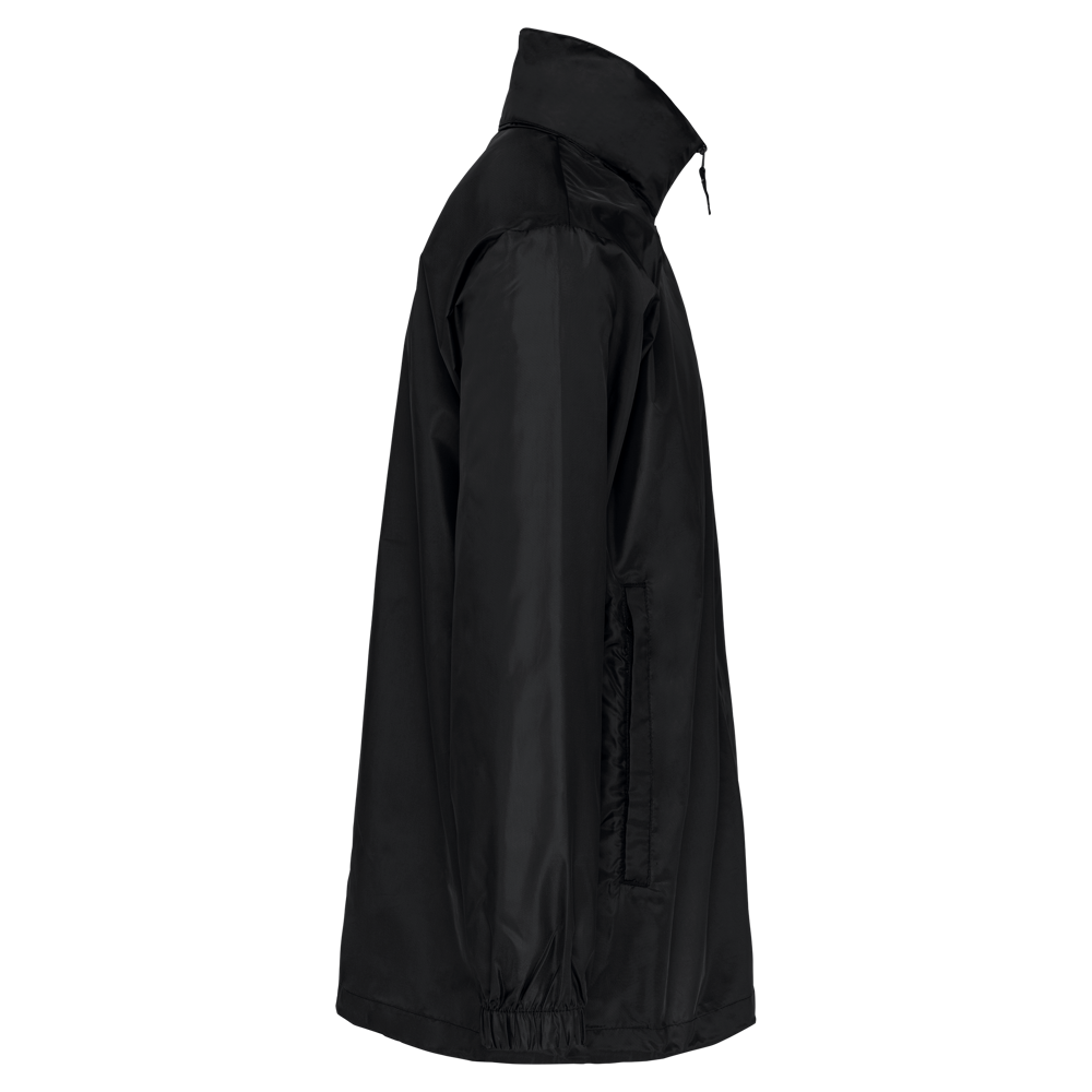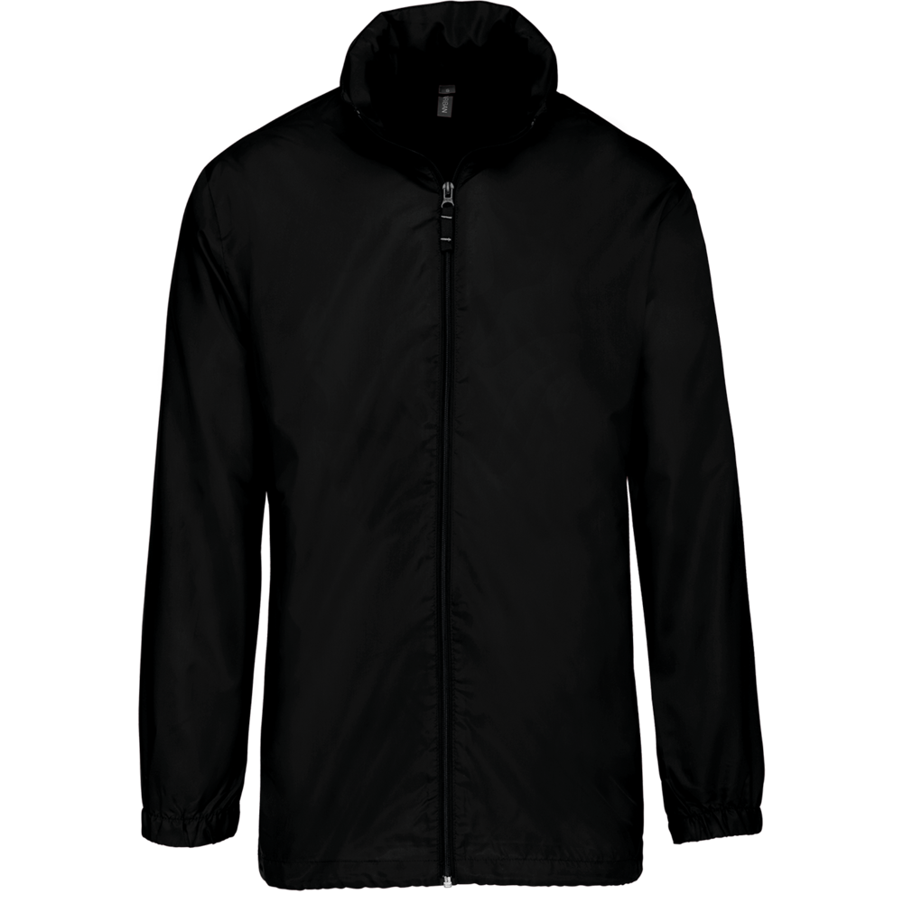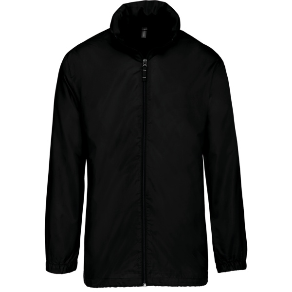 100% polyester. Capuchon in de kraag met klittenbands. 2 voorzakken met rits. Aanrijgkoord aan de onderkant. Elastische mouwuiteinden. Opvouwbaar in eigen binnenzak door middel van K-WAY® systeem. Toon op toon ritssluiting.