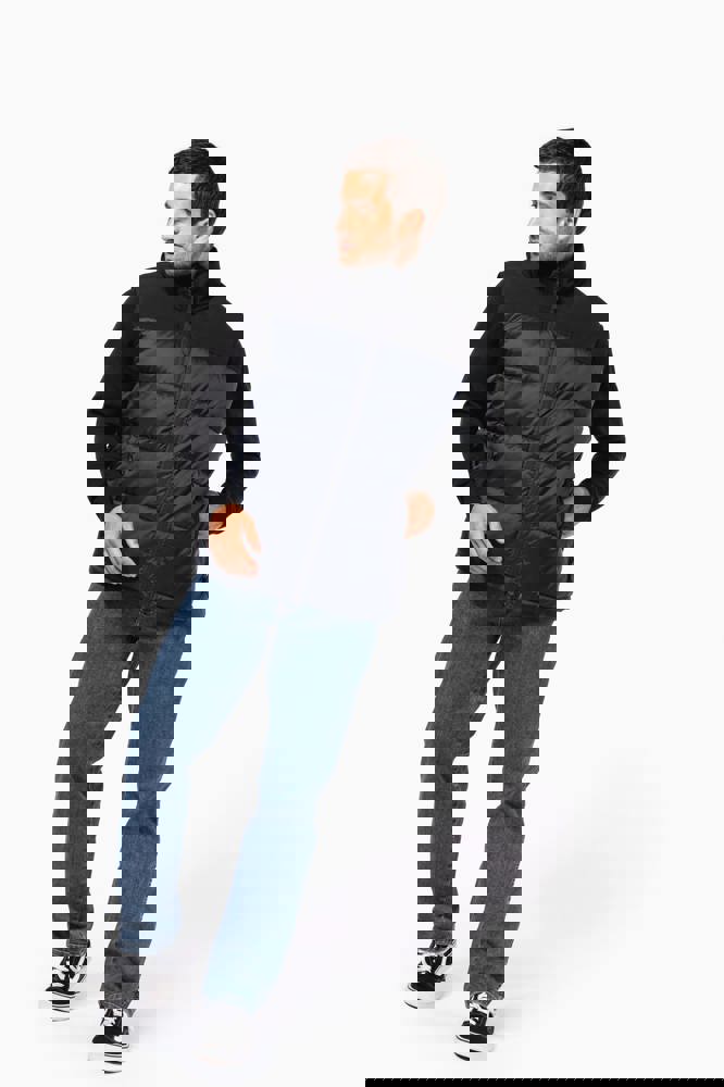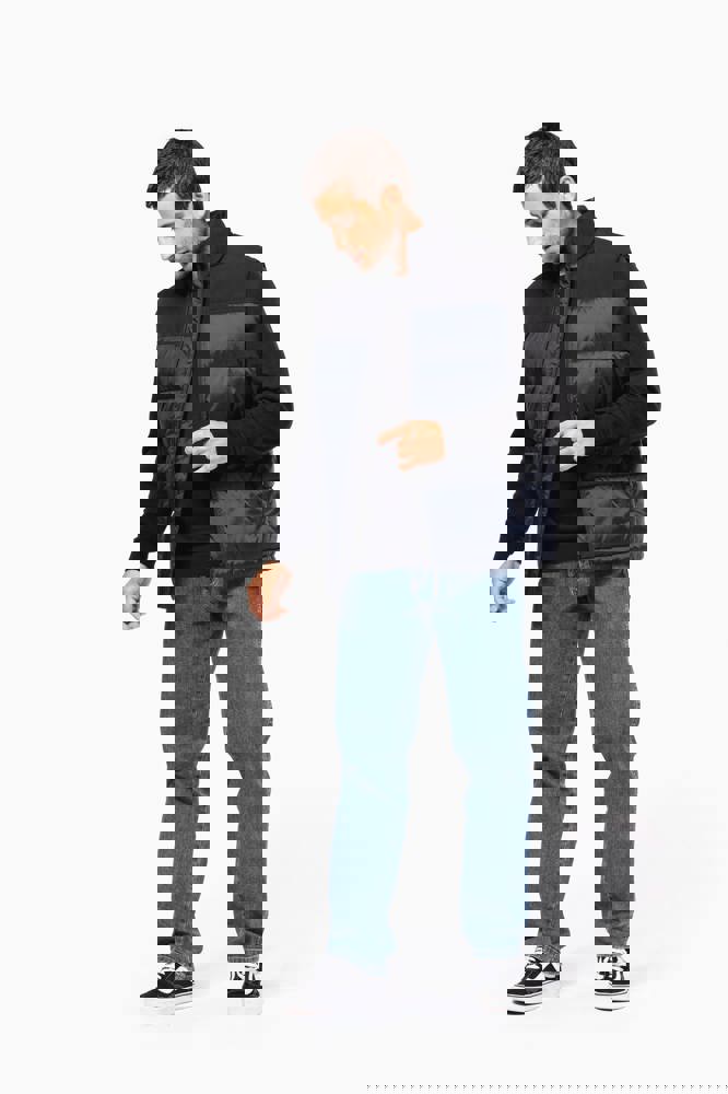 Hoofdstof: 100% 210T-polyamide. Bovendeel voor- en achteraan: 500D-taslonpolyamide. Antistatische en afwaterende stof. Voering in 100% tafpolyester. Vulling van 100% polyester. 2 ritszakken aan de voorkant opzij, met een omgekeerde rits. Sluit met een omgekeerde rits en een ritstrekker. Opstaande kraag met inzetsel. Binnenzak met klittenbandsluiting. Verborgen drukkersrits aan de binnenkant achteraan en de binnenkant van de borst. Zoom met aanrijgkoordjes en stoppers opzij aan de onderkant van het kledingstuk. Geen merklabel, maar enkel een maatlabel voor eenvoudige personalisatie. Geïnjecteerde vulling: het gewicht kan variëren afhankelijk van de zones van het kledingstuk. Het totaalgewicht is indicatief.