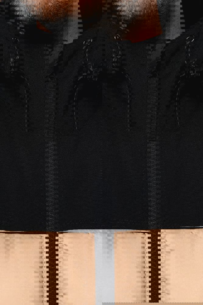Hoofdstof: 100% 210T-polyamide. Bovendeel voor- en achterkant: 500D-taslonpolyamide. Antistatische en waterafstotende stof. Voering in 100% tafpolyester. Vulling van 100% polyester. 2 ritszakken aan de voorkant opzij, met een omgekeerde rits en een ritstrekker. Capuchon: 500D-Talsonpolyamide, gewatteerd en gevoerd in 3 delen, met aanrijgkoordjes en stopper. Binnenzak met klittenbandsluiting. Elastische mouwuiteinden met klittenband. Zoom met aanrijgkoordjes en stoppers opzij aan de onderkant van het kledingstuk. Verborgen drukkersrits aan de binnenkant achteraan en de binnenkant van de borst. Geen merklabel, maar enkel een maatlabel voor eenvoudige personalisatie. Geïnjecteerde vulling: het gewicht kan variëren afhankelijk van de zones van het kledingstuk. Het totaalgewicht is indicatief.