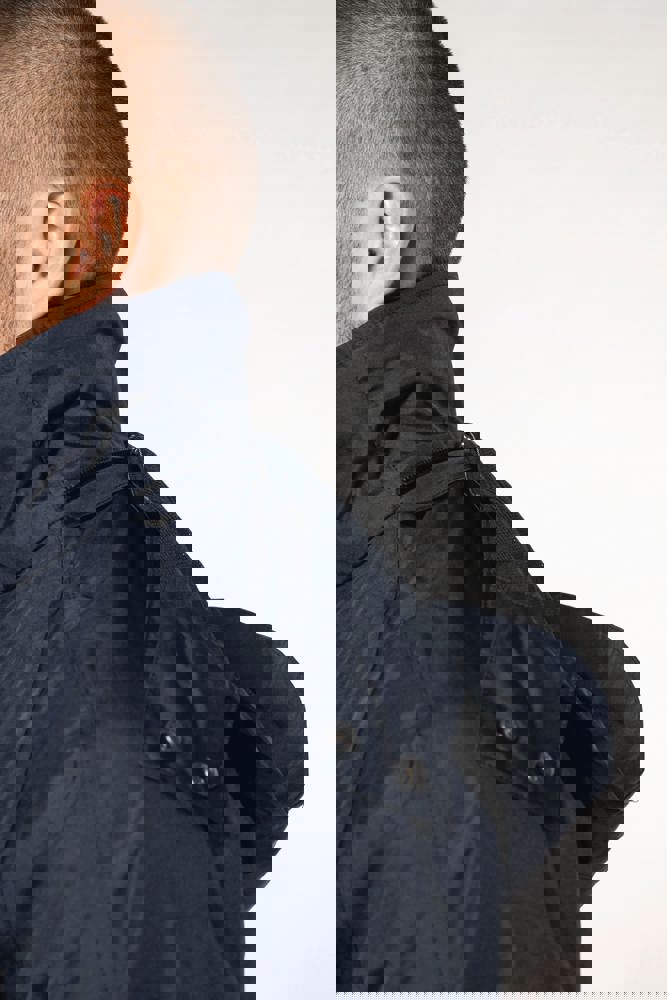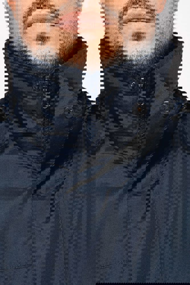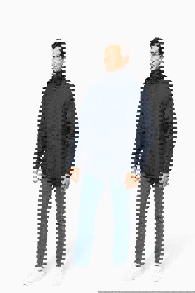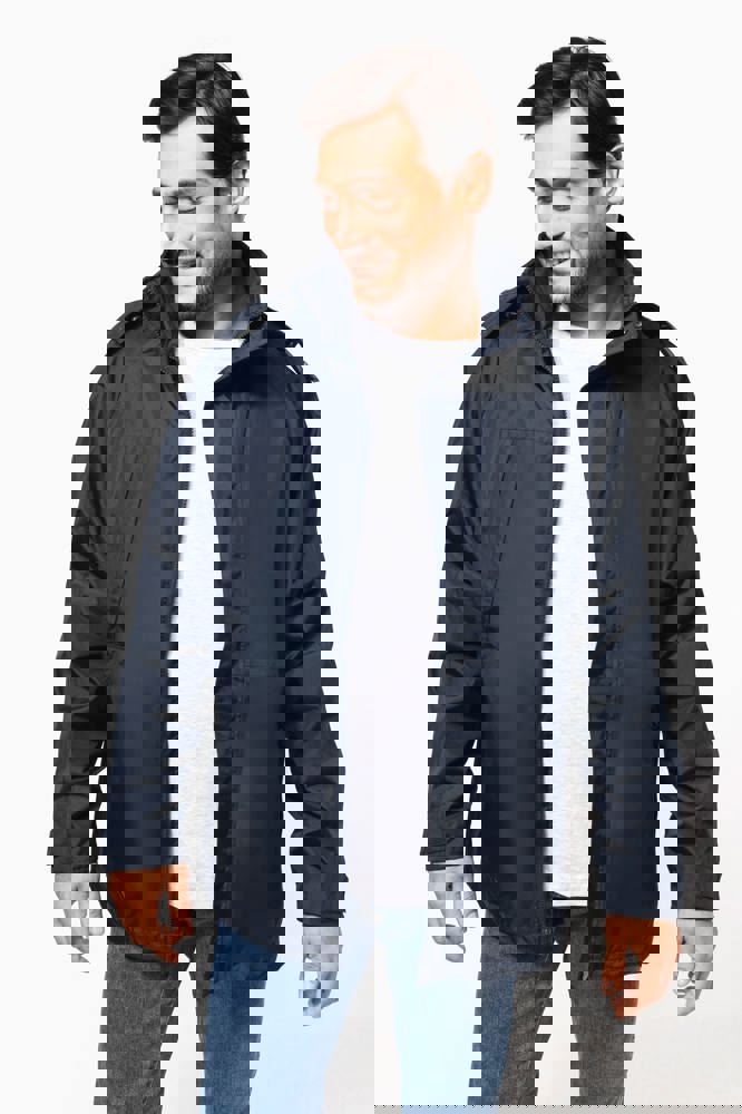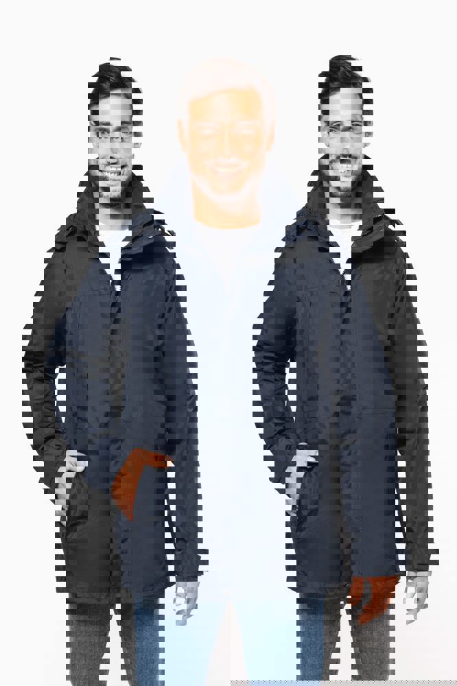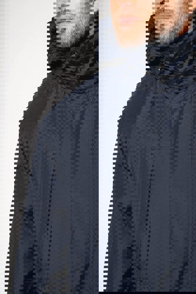 100% polyester met PVC coating. Waterdichte naden. PARKA 3-IN-1: Binnenkant: 100% netvoering van polyester en mouwen gevoerd met 100% polyester. Ritssluiting verborgen onder een lijst met drukknopen. Binnenkant van de kraag in fleecevoering. 3 zakken met rits en overslag. Regelbare mouwuiteinden met klittenbandsluiting. Afneembare capuchon met netvoering en sluiting door middel van drukknopen en stoppers. Drukkersrits. Fleecevest: 100% polyester microfleece. Mouwen gevoerd met 100% polyester om het vest eenvoudig uit en aan te trekken. Ritssluiting. 2 zijzakken. Uitneembaar fleecejack aan parka bevestigd met rits.