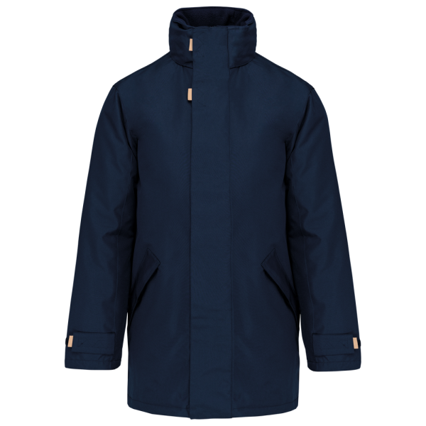 Buitenkant: 100% oxford polyester. Binnenkant: gewatteerd polyester. 2 voorzakken met rits. 2 binnenzakken waarvan 1 voor de GSM. Capuchon verborgen in de kraag. Kraag met fleecevoering. Drukkersrits. Ritssluiting verborgen onder een lijst met drukknopen en klittenband. Verstelbare mouwuiteinden met klittenband.
