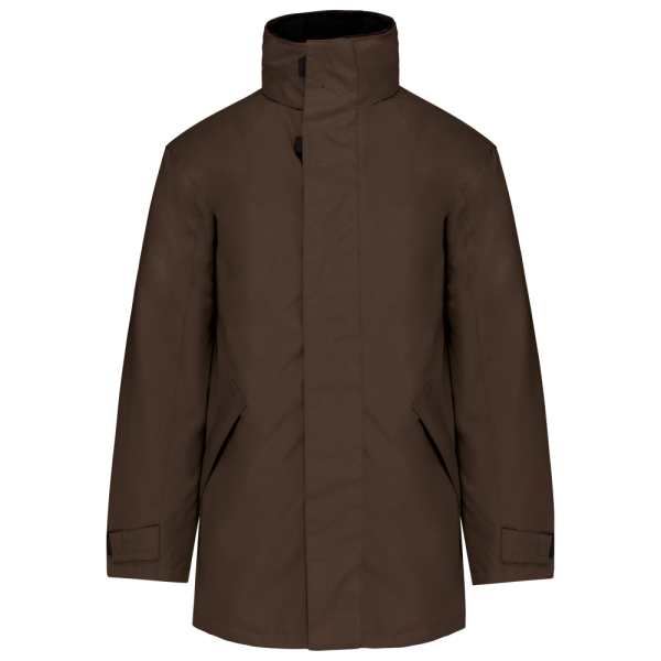 Buitenkant: 100% oxford polyester. Binnenkant: gewatteerd polyester. 2 voorzakken met rits. 2 binnenzakken waarvan 1 voor de GSM. Capuchon verborgen in de kraag. Kraag met fleecevoering. Drukkersrits. Ritssluiting verborgen onder een lijst met drukknopen en klittenband. Verstelbare mouwuiteinden met klittenband.
