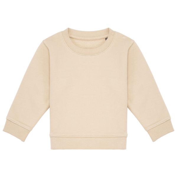 85% biologisch katoen / 15% post-consumer gerecycleerd polyester. Aan de binnenkant geborsteld fleece 3 draden. Enzymgewassen. Fitted pasvorm. 1x1 ribboord in buisconstructie voor een betere afwerking aan de hals, de mouwuiteinden en de onderkant. Kraag met 2 drukknopen (1 op de kraag en 1 op de schouder) voor gemakkelijk aantrekken. Ton-sur-ton nektape in jersey. Dubbel stiksel aan de mouwuiteinden, de onderkant en de hals. Geen merklabel in de kraag, maar enkel een maatlabel voor eenvoudige personalisatie.