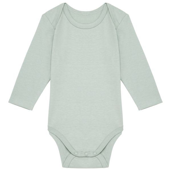 100% biologisch katoen. Gekamd katoen. Jerseystof. Enzymgewassen. Amerikaanse hals met biesje. De body sluit onderaan met 3 drukknopen, afgewerkt met een biesje. Dubbel stiksel aan de mouwuiteinden. Geen merklabel, maar enkel een maatlabel voor eenvoudige personalisatie.