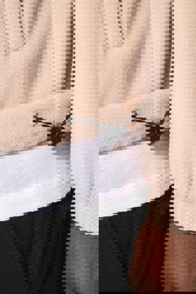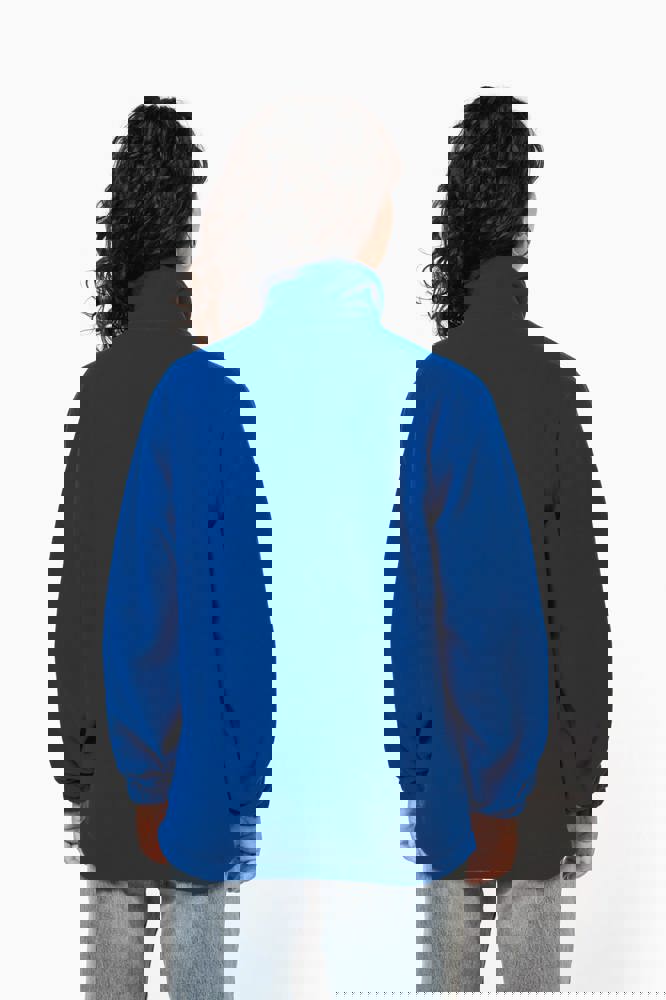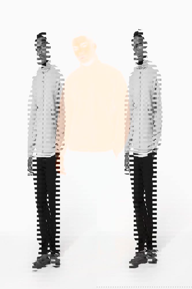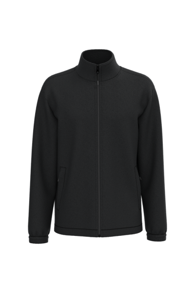 100% microfleece polyester met antipluisbehandeling. 2 omzoomde ritszakken opzij. Ritssluiting. Elastische mouwuiteinden. Boord verstelbaar met elastische aanrijgkoordjes (de elastiek zit aan de binnenkant vast om hem te verbergen).