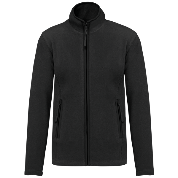 100% polyester microfleece met anti-pilling behandeling. 2 zijzakken met rits. Gerader Schnitt. Afwerkingsbiesje aan de kraag, de mouwuiteinden en de ritsen.