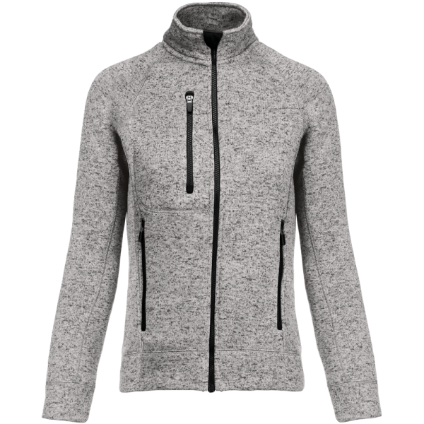 Geborstelde binnentricot 100% polyester. Raglanmouwen. Ritssluiting. 2 contrasterende ritszakken aan de voorkant en 1 contrasterende borstzak met rits. Overlocksteek op de inzetstukken. Heel comfortabele snit en stof.
