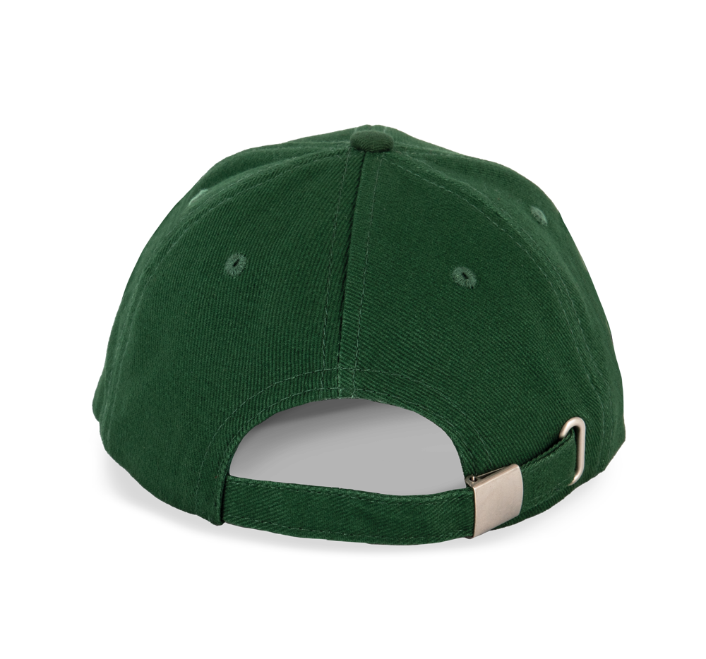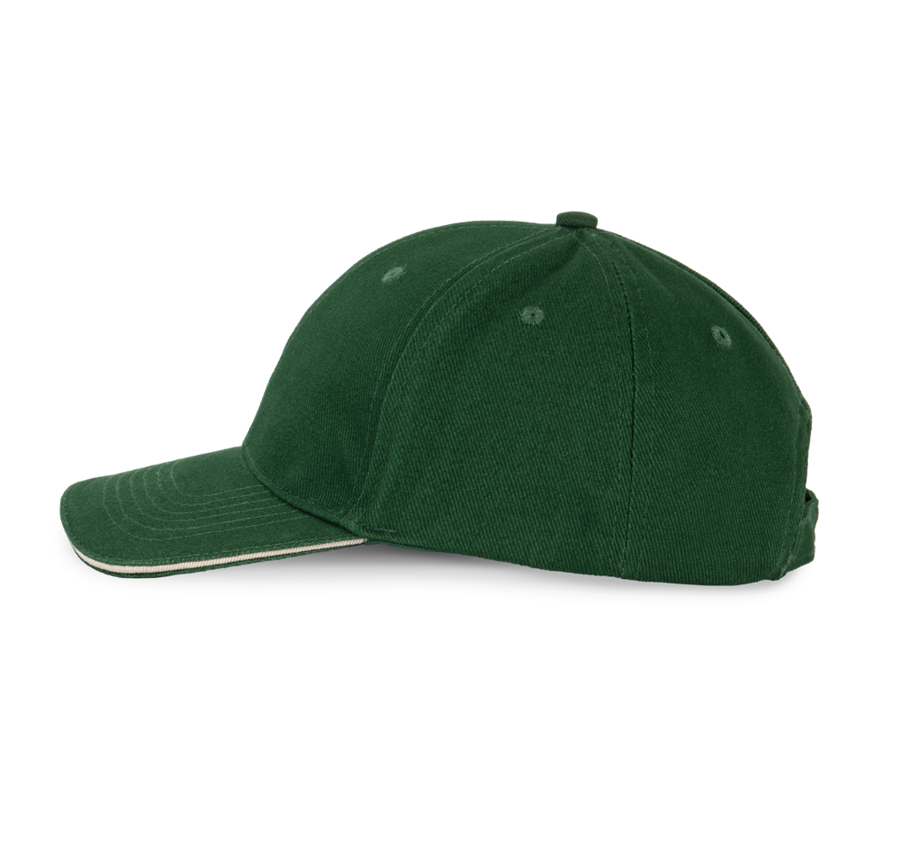 100% zwaar geborsteld katoen twill. Voorgevormde klep met contrasterende bies. Verstelbare sluiting met een zilverkleurige metalen gesp.
