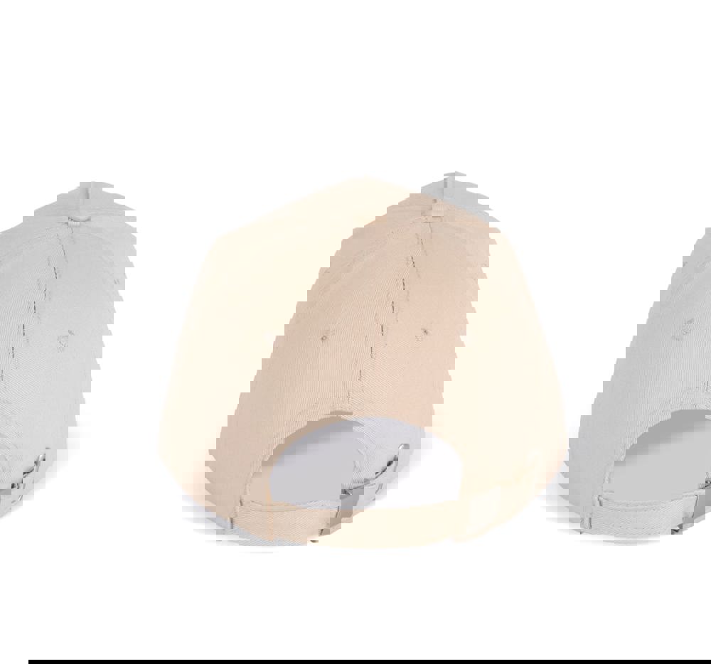100% katoen twill. Verstevigde voorkant. Voorgevormde klep. Verstelbare sluiting met een zilverkleurige metalen gesp.