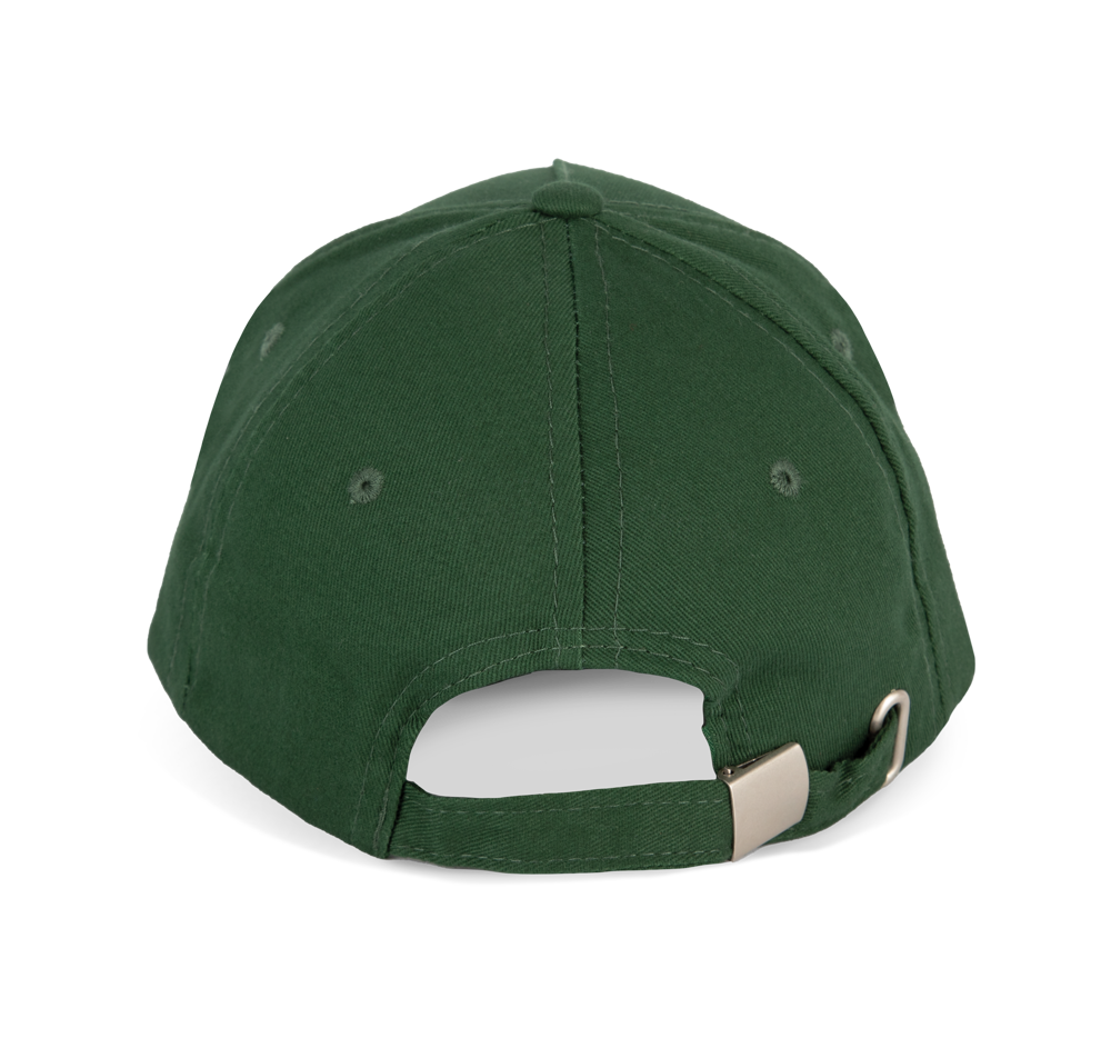 100% geborsteld twillkatoen. 5 panelen. Contrasterende bies. Verstelbare sluiting aan de achterkant met metalen gesp. Hoofdomvang: 53 cm.