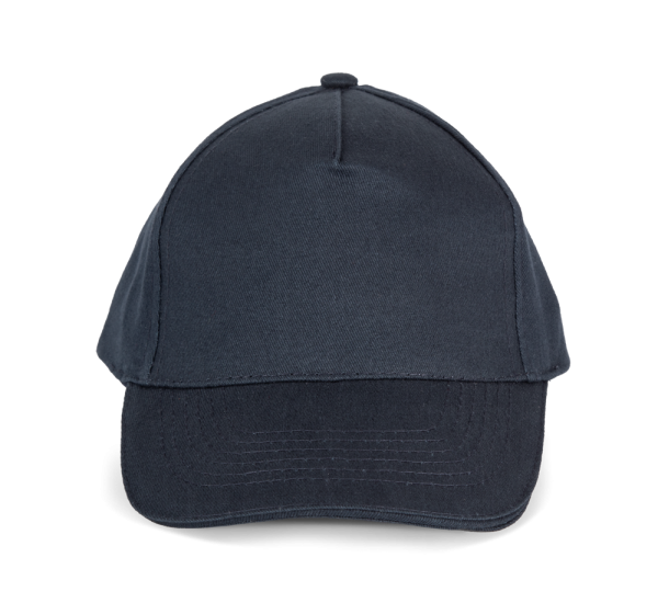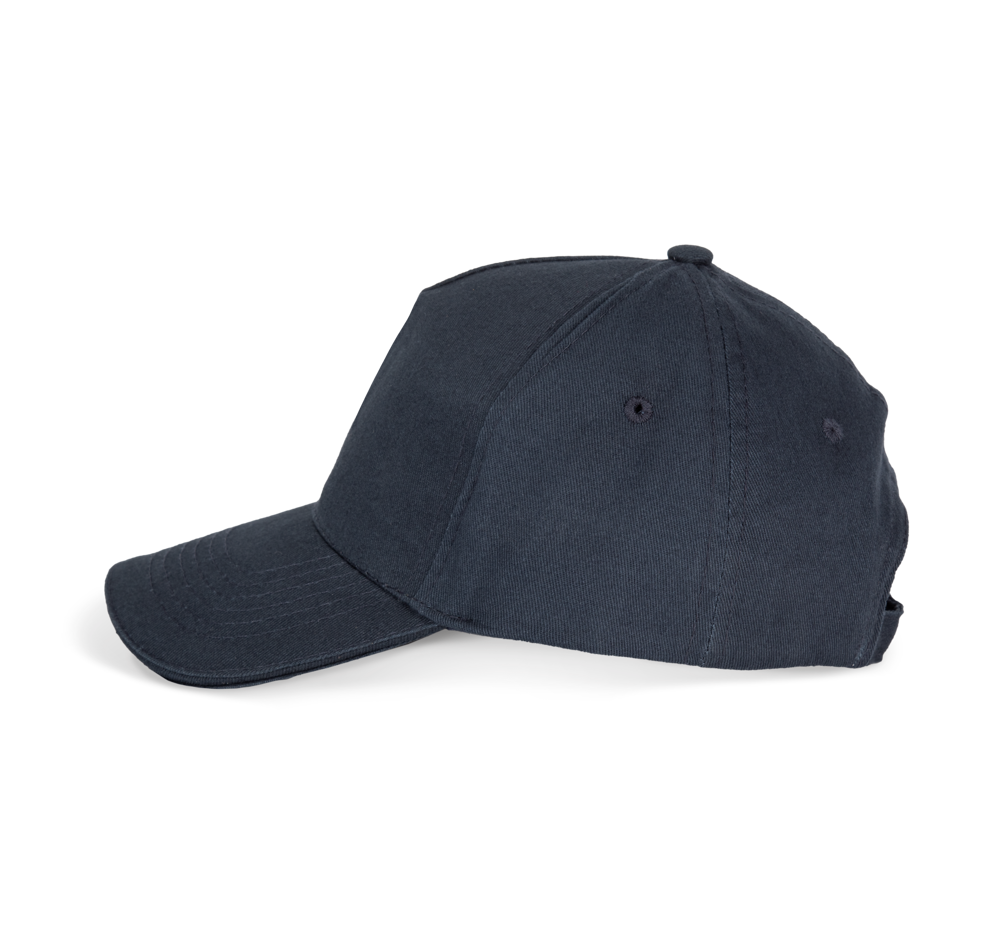 100% geborsteld twillkatoen. 5 panelen. Contrasterende bies. Verstelbare sluiting aan de achterkant met metalen gesp. Hoofdomvang: 53 cm.