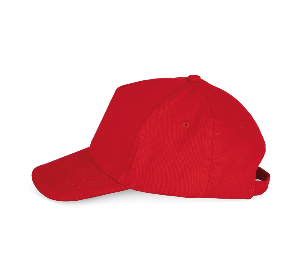 100% geborsteld twillkatoen. 5 panelen. Contrasterende bies. Verstelbare sluiting aan de achterkant met metalen gesp. Hoofdomvang: 53 cm.