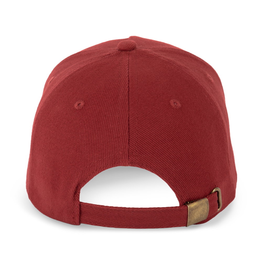 100% katoen. Dik gekamd katoen. Pet met 5 panelen. Sluiting aan de achterkant met metalen gesp.