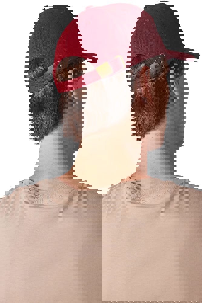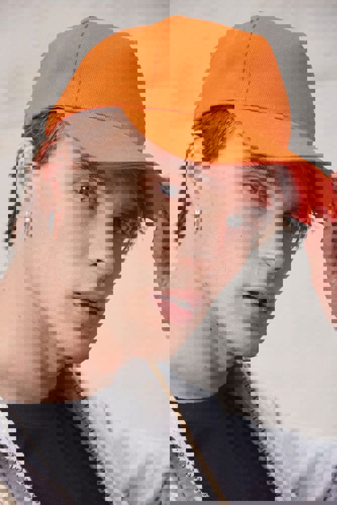 100% katoen. Dik gekamd katoen. Pet met 5 panelen. Sluiting aan de achterkant met metalen gesp.