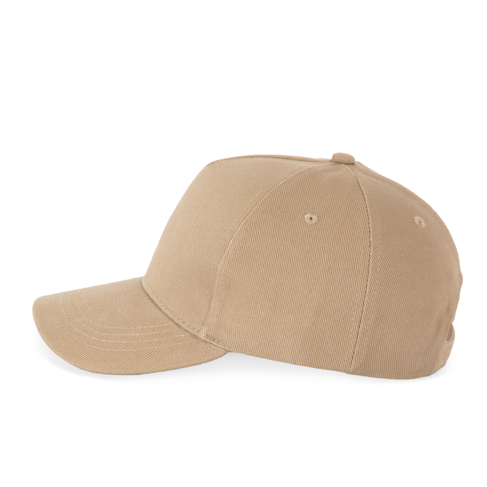 100% katoen. Dik gekamd katoen. Pet met 5 panelen. Sluiting aan de achterkant met metalen gesp.