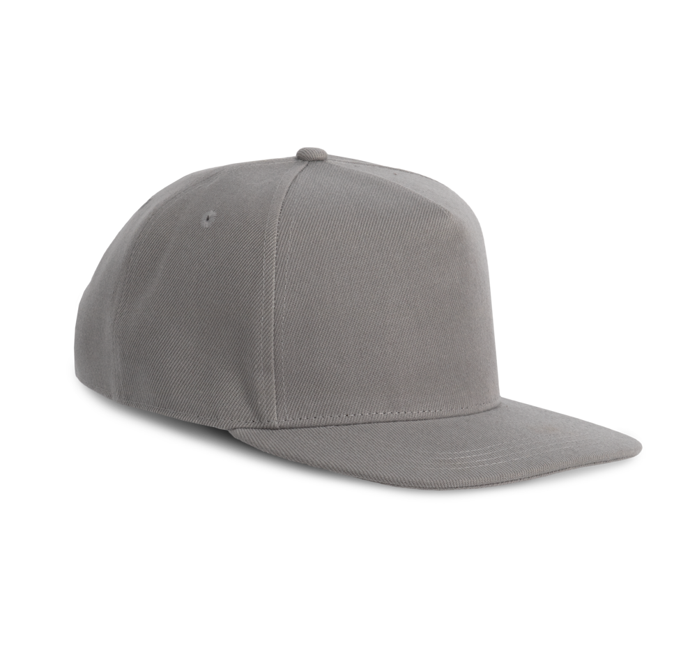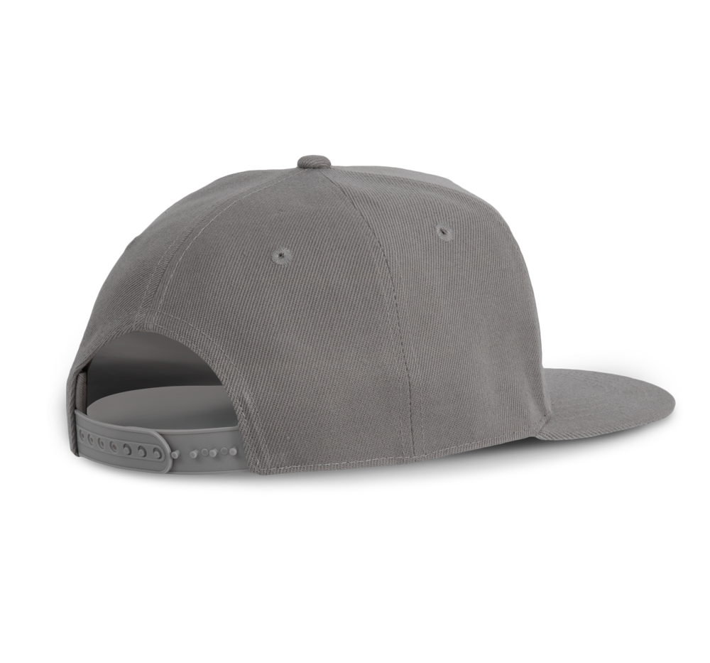 100% polyester. Pet Snapback met 5 panelen. Rechte zonneklep en hoog profiel. Met een verstelbare druksluiting van plastic.