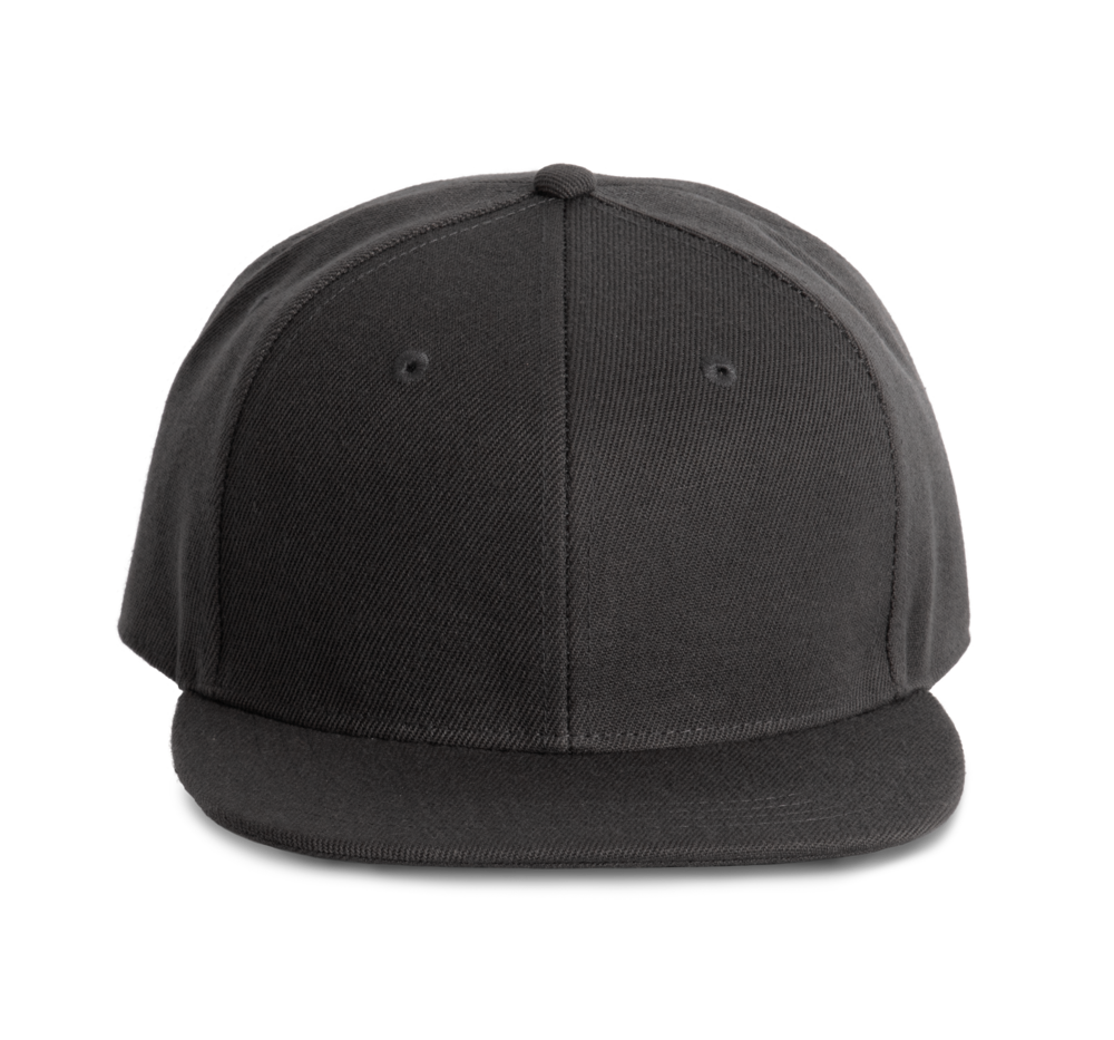100% polyester. Pet Snapback met 6 panelen. Platte zonneklep en hoog profiel. Verstelbare druksluiting van plastic.