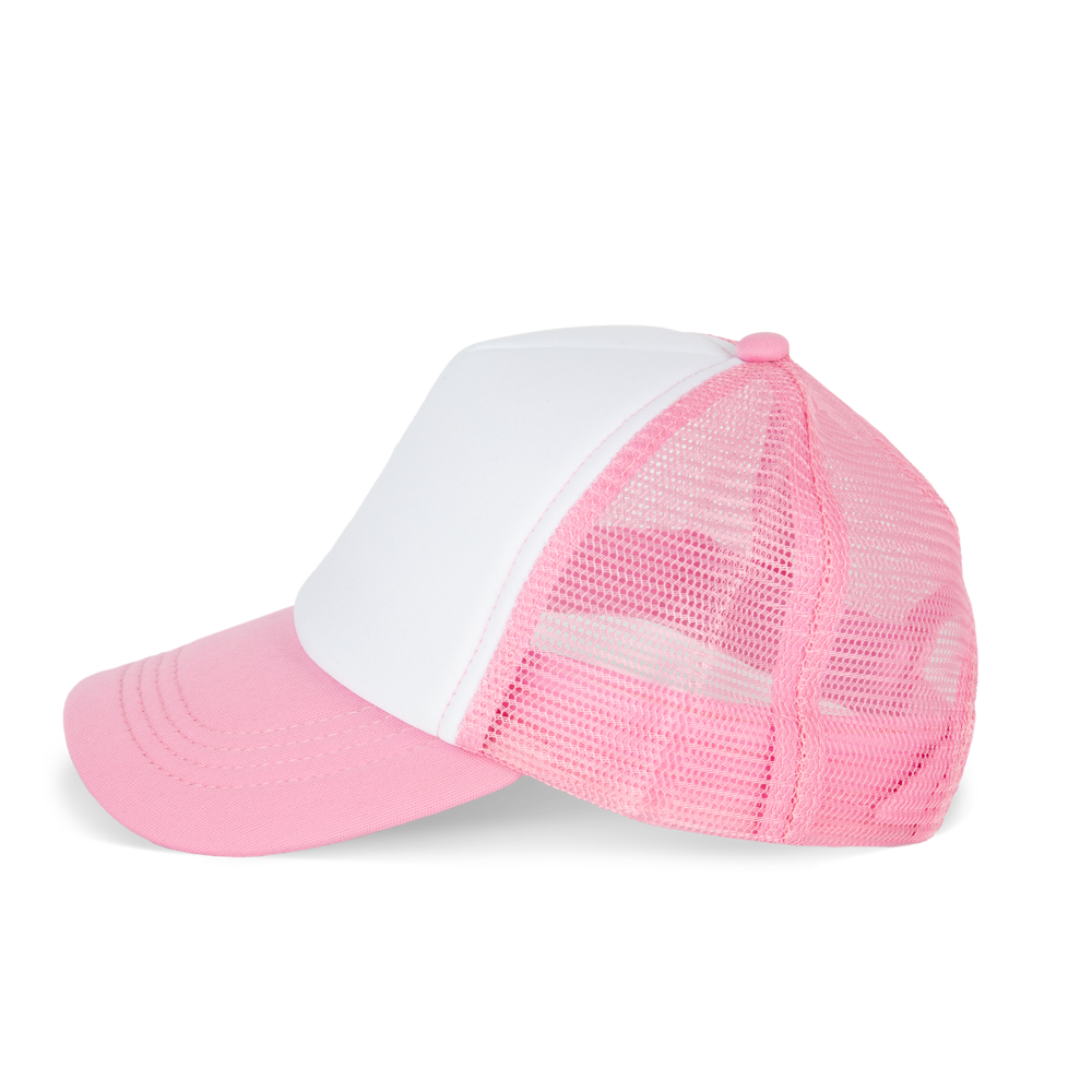 100% polyester met mesh van polyester aan de achterkant. 5 panelen. Eenvoudige aanpassing van het frontpaneel. Verstelbare druksluiting van plastic. Hoofdomvang: 53 cm.