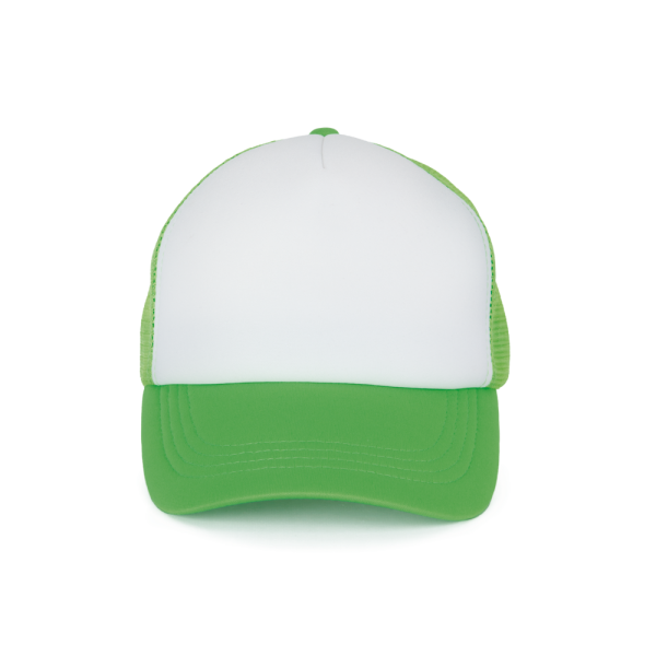 100% polyester met mesh van polyester aan de achterkant. 5 panelen. Eenvoudige aanpassing van het frontpaneel. Verstelbare druksluiting van plastic. Hoofdomvang: 53 cm.