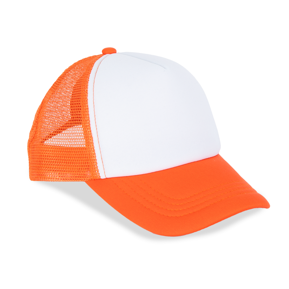 100% polyester met mesh van polyester aan de achterkant. 5 panelen. Eenvoudige aanpassing van het frontpaneel. Verstelbare druksluiting van plastic. Hoofdomvang: 53 cm.