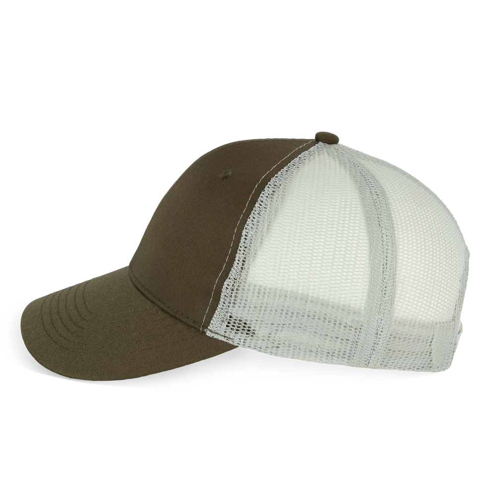 65% katoen / 35% polyester. Truckerpet met 6 panelen en zonneklep met half profiel en verstevigde ton-sur-ton voorpanelen.
