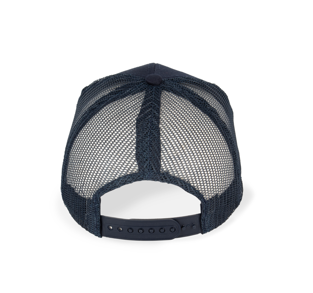 65% katoen / 35% polyester. Truckerpet met 6 panelen en zonneklep met half profiel en verstevigde ton-sur-ton voorpanelen.
