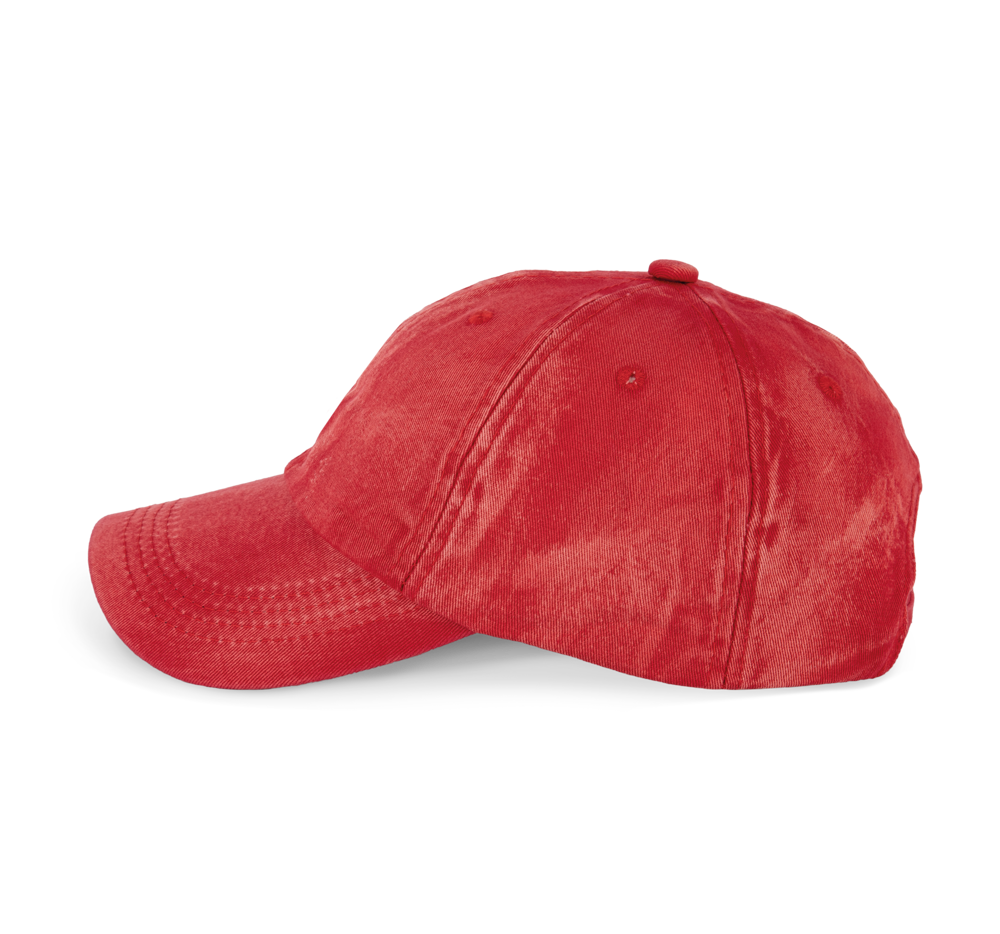 100% zwaar geborsteld katoen voor de vintage look. 6 panelen. Laag profiel zonneklep, afgerond. Verstelbare sluiting aan de achterkant met metalen gesp.
