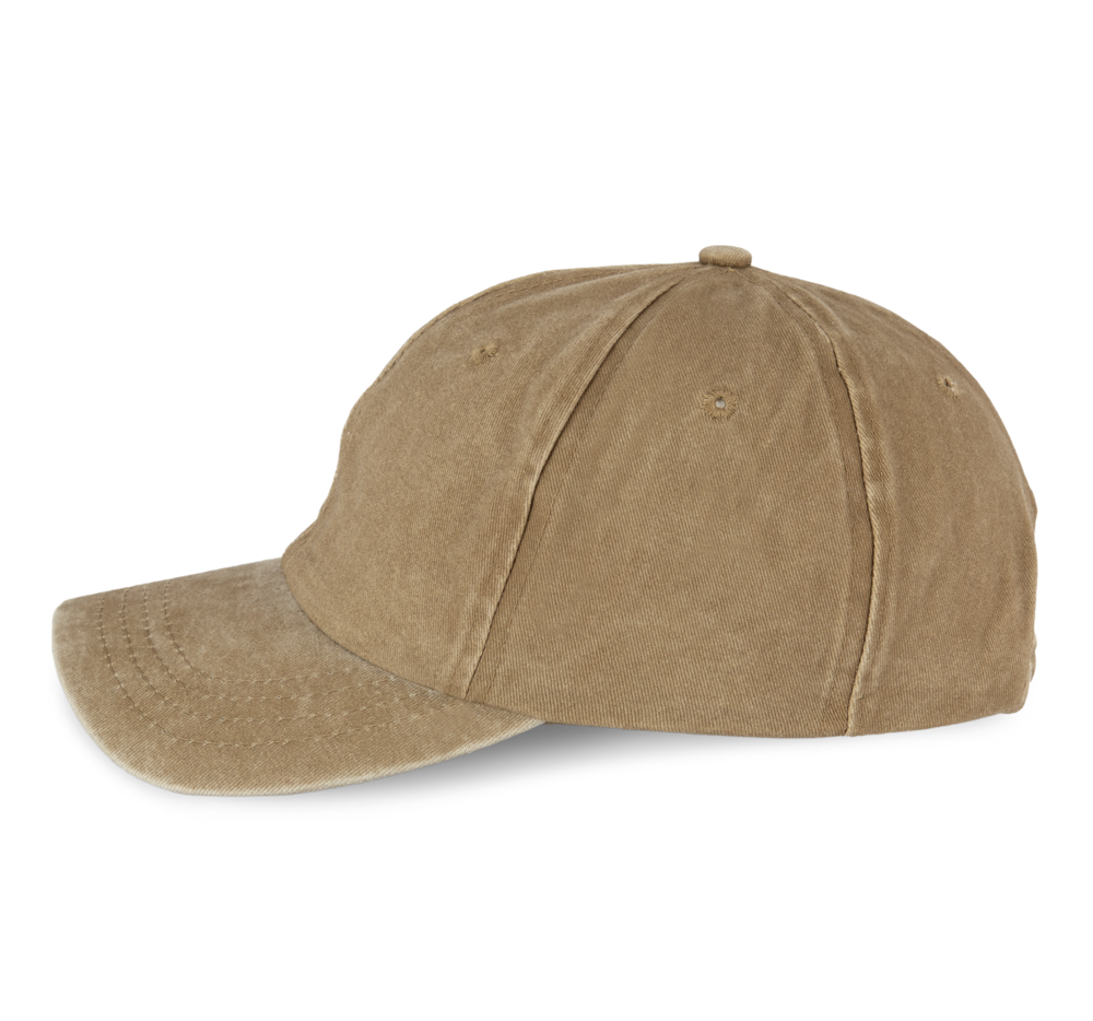100% zwaar geborsteld katoen voor de vintage look. 6 panelen. Laag profiel zonneklep, afgerond. Verstelbare sluiting aan de achterkant met metalen gesp.