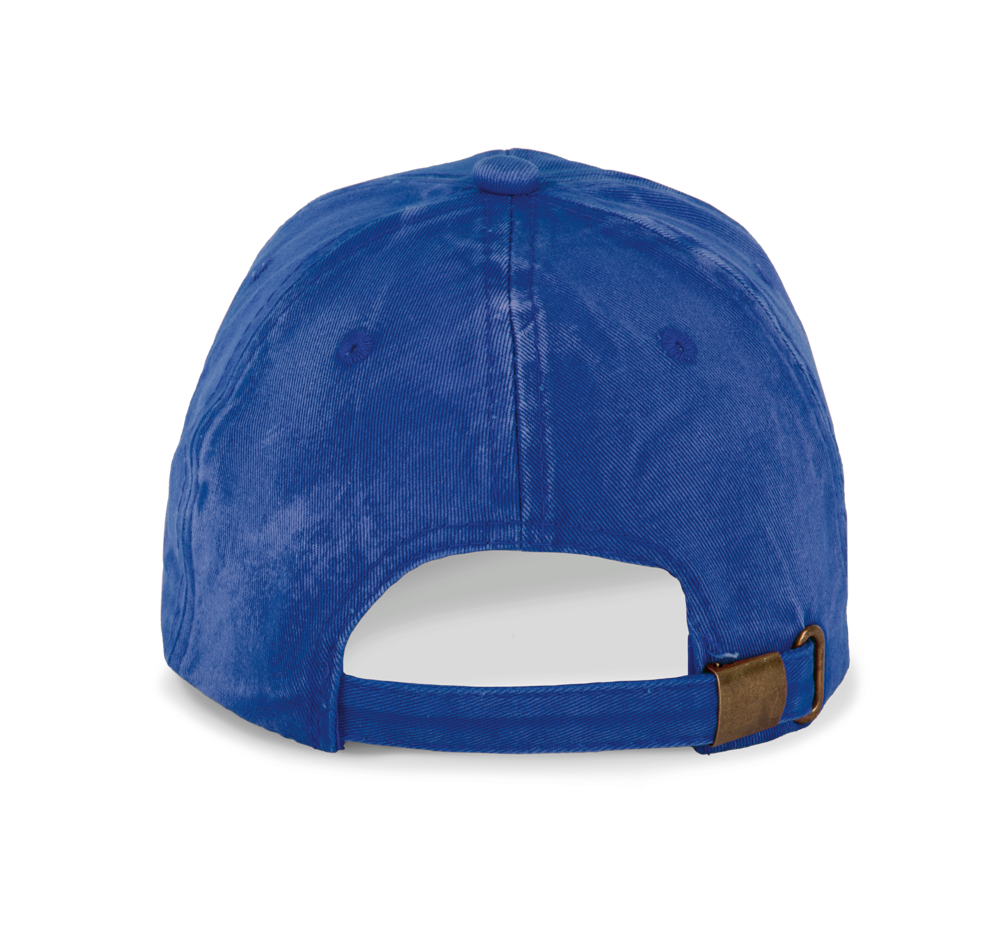 100% zwaar geborsteld katoen voor de vintage look. 6 panelen. Laag profiel zonneklep, afgerond. Verstelbare sluiting aan de achterkant met metalen gesp.