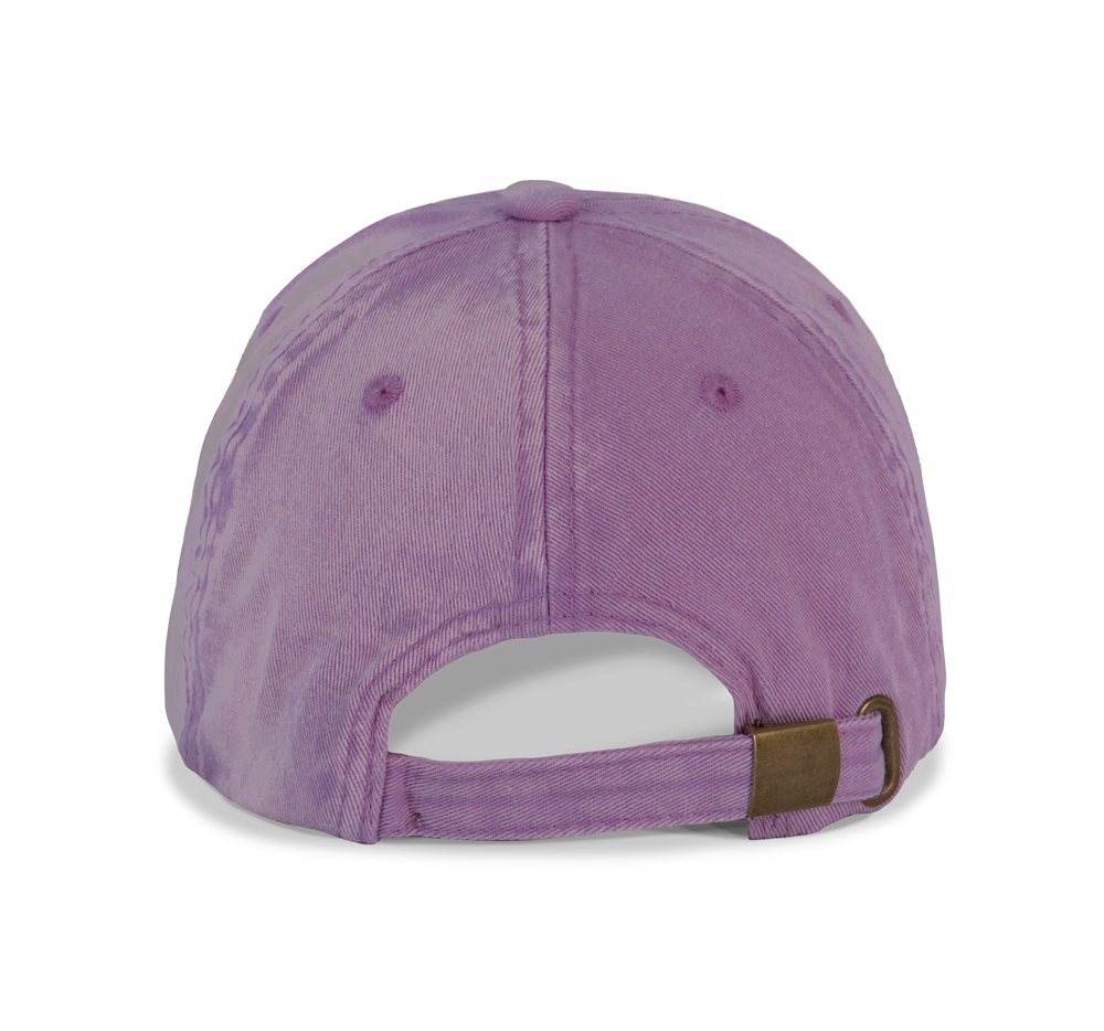100% zwaar geborsteld katoen voor de vintage look. 6 panelen. Laag profiel zonneklep, afgerond. Verstelbare sluiting aan de achterkant met metalen gesp.