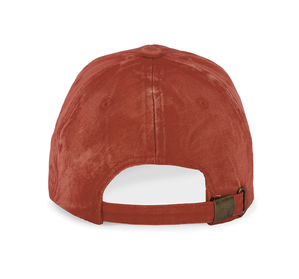 100% zwaar geborsteld katoen voor de vintage look. 6 panelen. Laag profiel zonneklep, afgerond. Verstelbare sluiting aan de achterkant met metalen gesp.