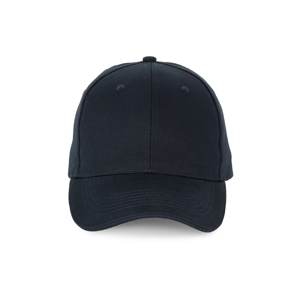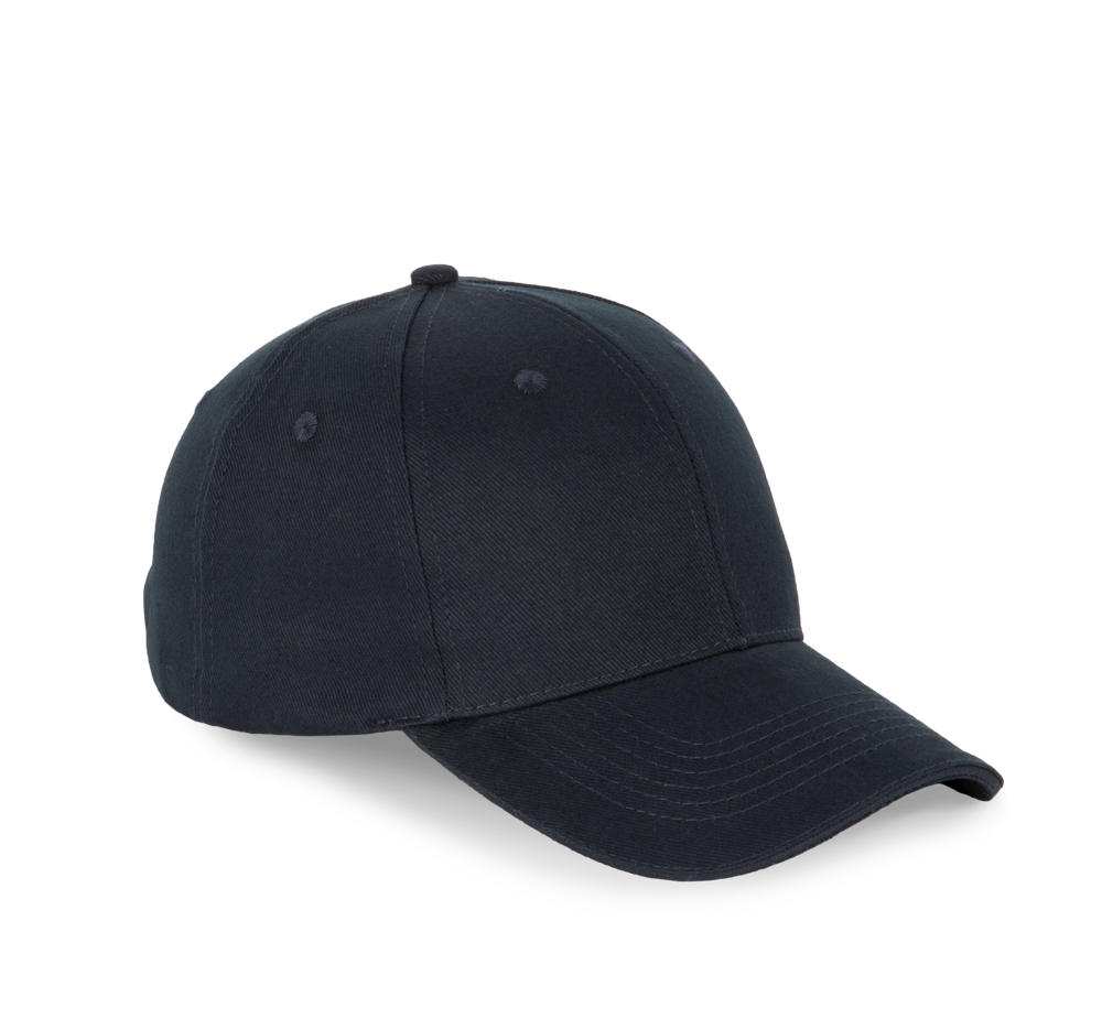 100% katoen. Pet met 6 panelen en contrasterende bies. Verstelbare sluiting met metalen gesp en zelfblokkerende lus.