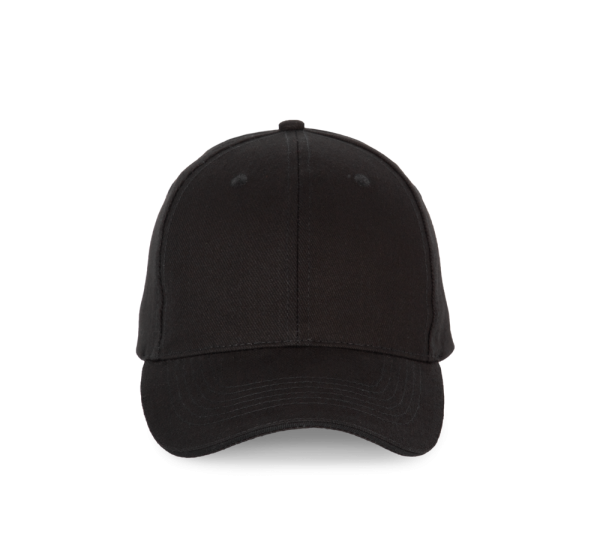 100% katoen. Pet met 6 panelen en contrasterende bies. Verstelbare sluiting met metalen gesp en zelfblokkerende lus.