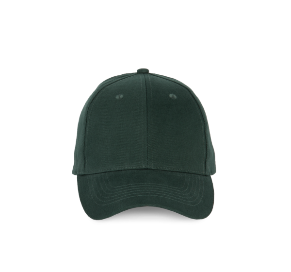 100% katoen. Pet 6 panelen. Verstelbare sluiting met metalen gesp en zelfblokkerende lus.