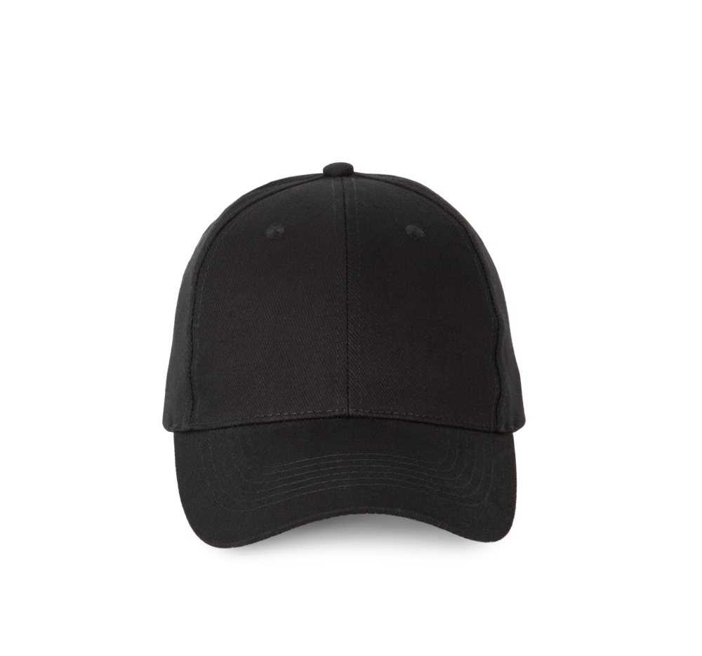 100% katoen. Pet 6 panelen. Verstelbare sluiting met metalen gesp en zelfblokkerende lus.