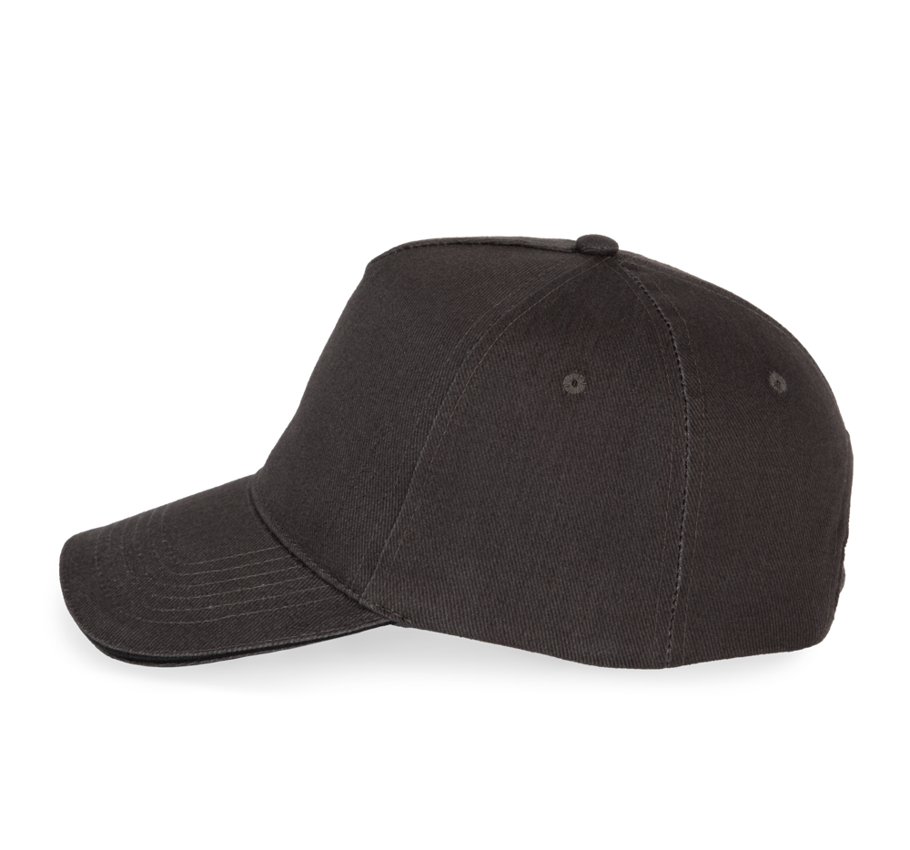 100% katoen. Pet met 5 panelen. Verstelbare sluiting met metalen gesp en zelfblokkerende lus.