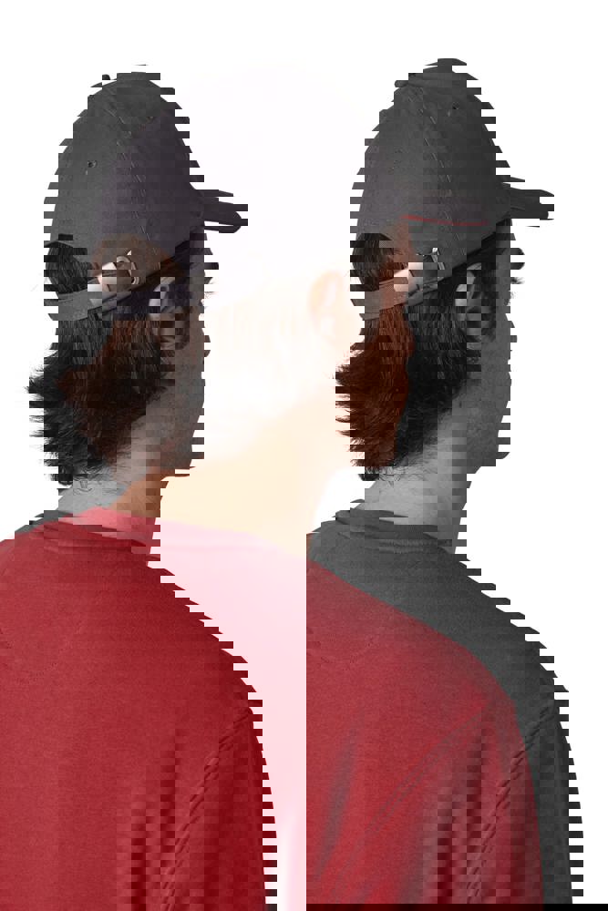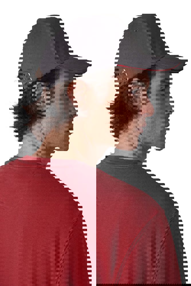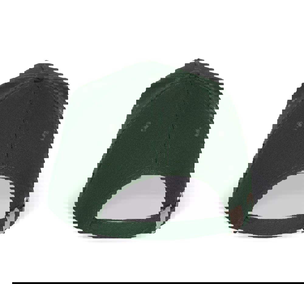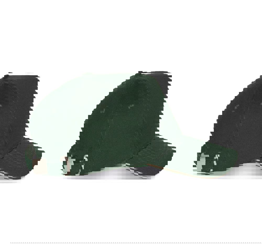100% zwaar geborsteld sergé katoen. 5 panelen. Klep met contstrasterende bies. Katoenen zweetband. Verstelbare gesp-sluiting.