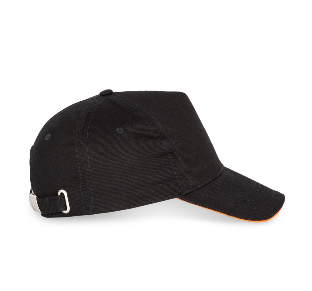 100% zwaar geborsteld sergé katoen. 5 panelen. Klep met contstrasterende bies. Katoenen zweetband. Verstelbare gesp-sluiting.