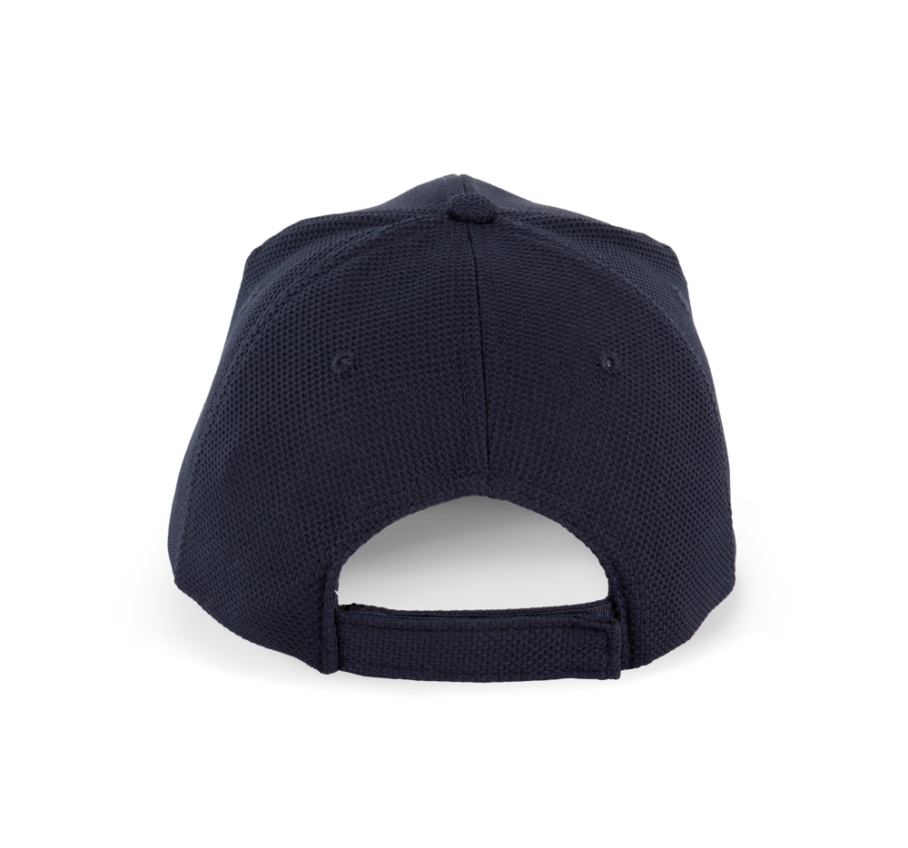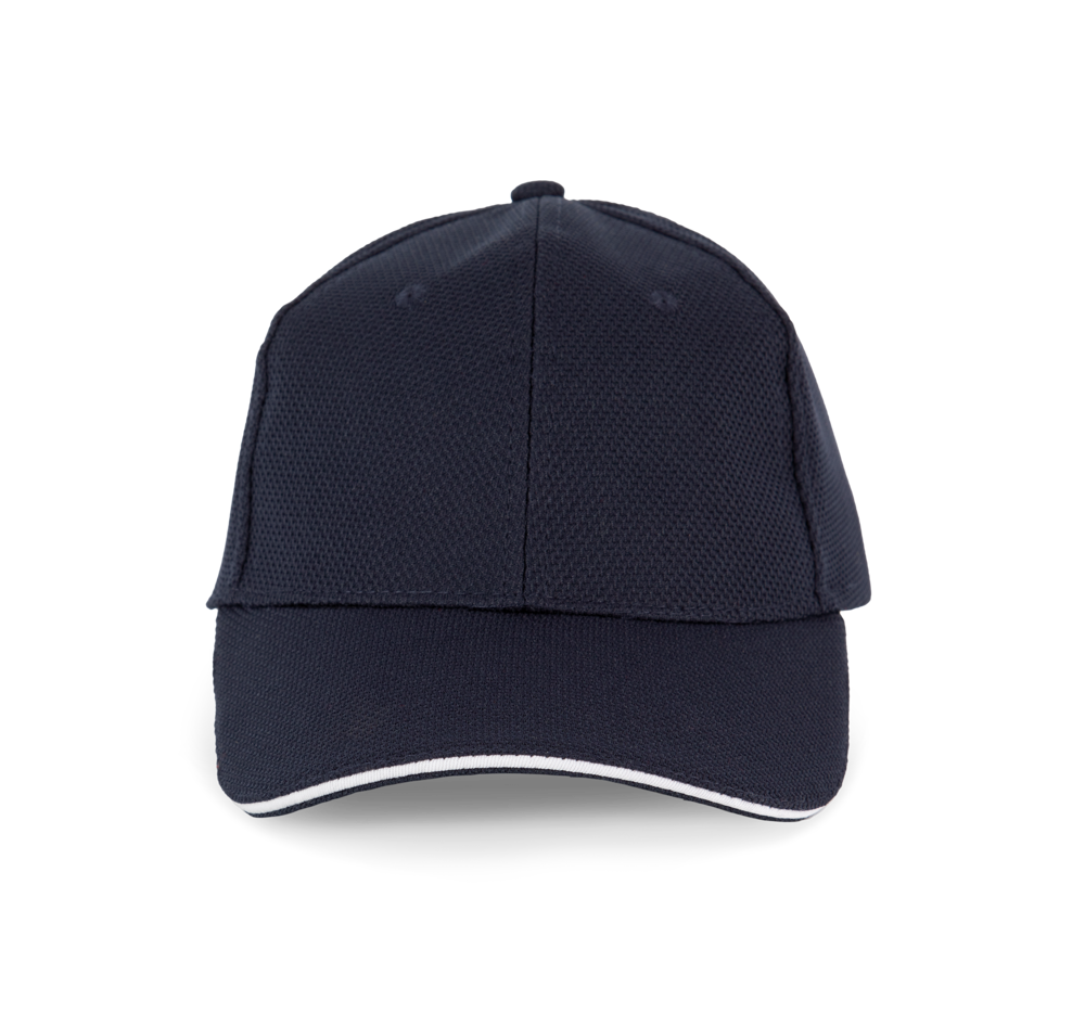 100% polyester piqué. Luchtgaatjes. Rand van de klep in contrastkleur. Afgezet met een band van badstof aan de binnenkant voor een optimaal comfort. Verstelbare sluiting van klittenband.