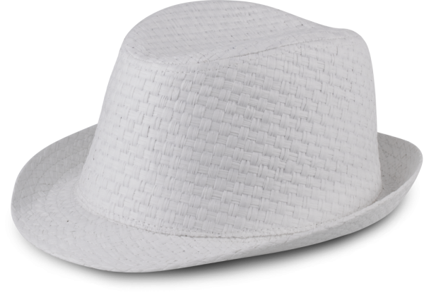 Hoed van plantaardige vezel en met smalle randen in retro Panama-stijl. Verkocht zonder lint. Het lint KP609 moet afzonderlijk besteld worden in de juiste maat.