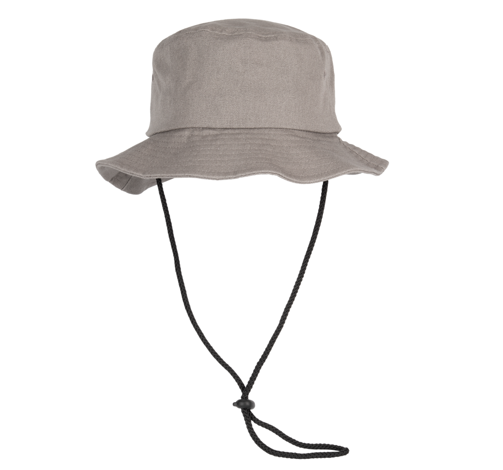 100% katoen. Katoenen bob in de stijl van een bucket hat. Veter met stopper. Tear-away merklabel.