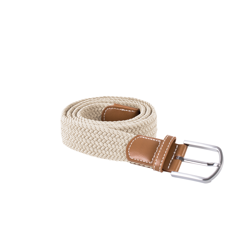 Gevlochten riem met metalen gesp. Dankzij de elastische samenstelling van 52% rubber en 48%...meer