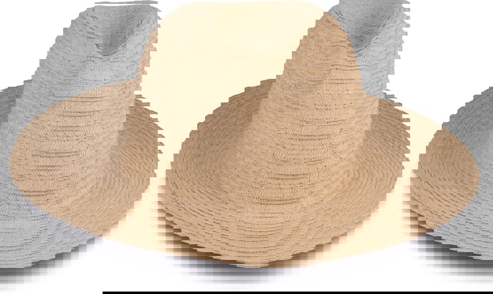 Hoed van plantaardige vezel in Borsalino-stijl met brede boorden van 7 cm. Verkocht zonder lint. Het lint KP609 moet afzonderlijk besteld worden in de juiste maat.