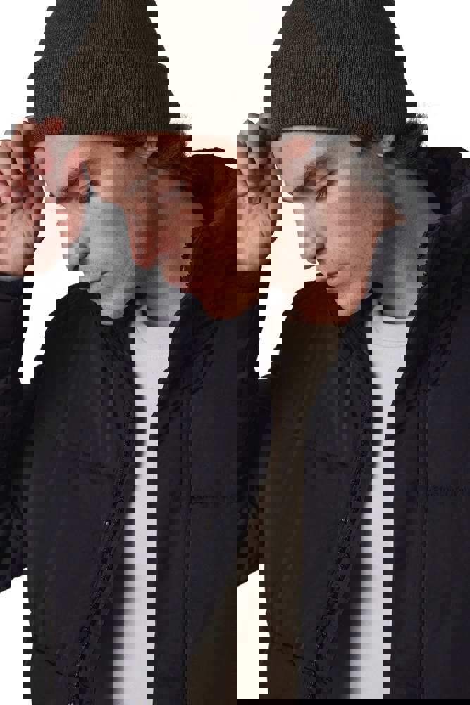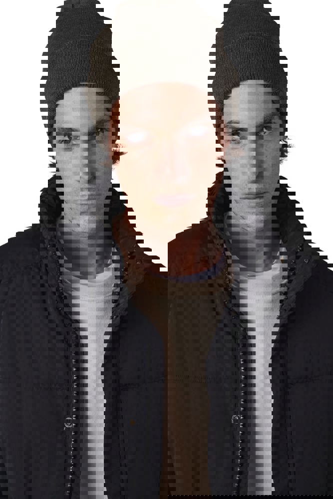 40% gerecycleerd polyester / 20% polyester / 40% acryl. Gebreide muts met omslag. Hele comfortabele Thinsulate-fleecevoering.