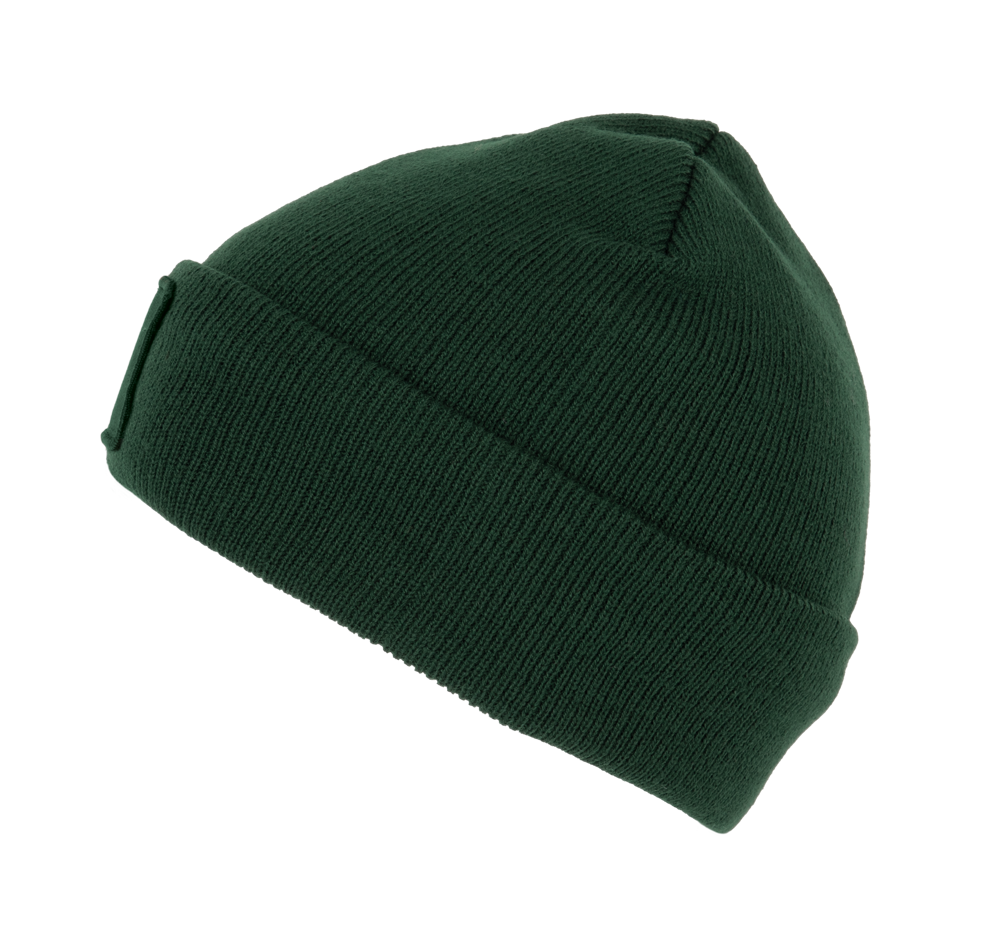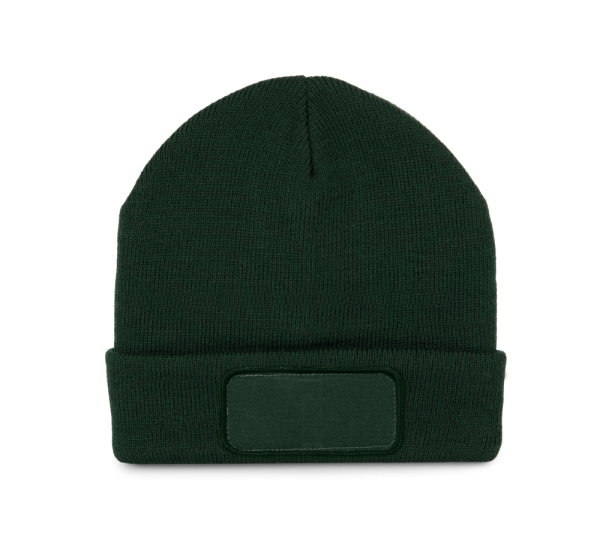 100% acryl. Gebreide muts met omslag in zacht acryl. Katoenen patch aan de voorkant, voor eenvoudige personalisatie. Heel comfortabele Thinsulate-fleecevoering. Tear-away merklabel.