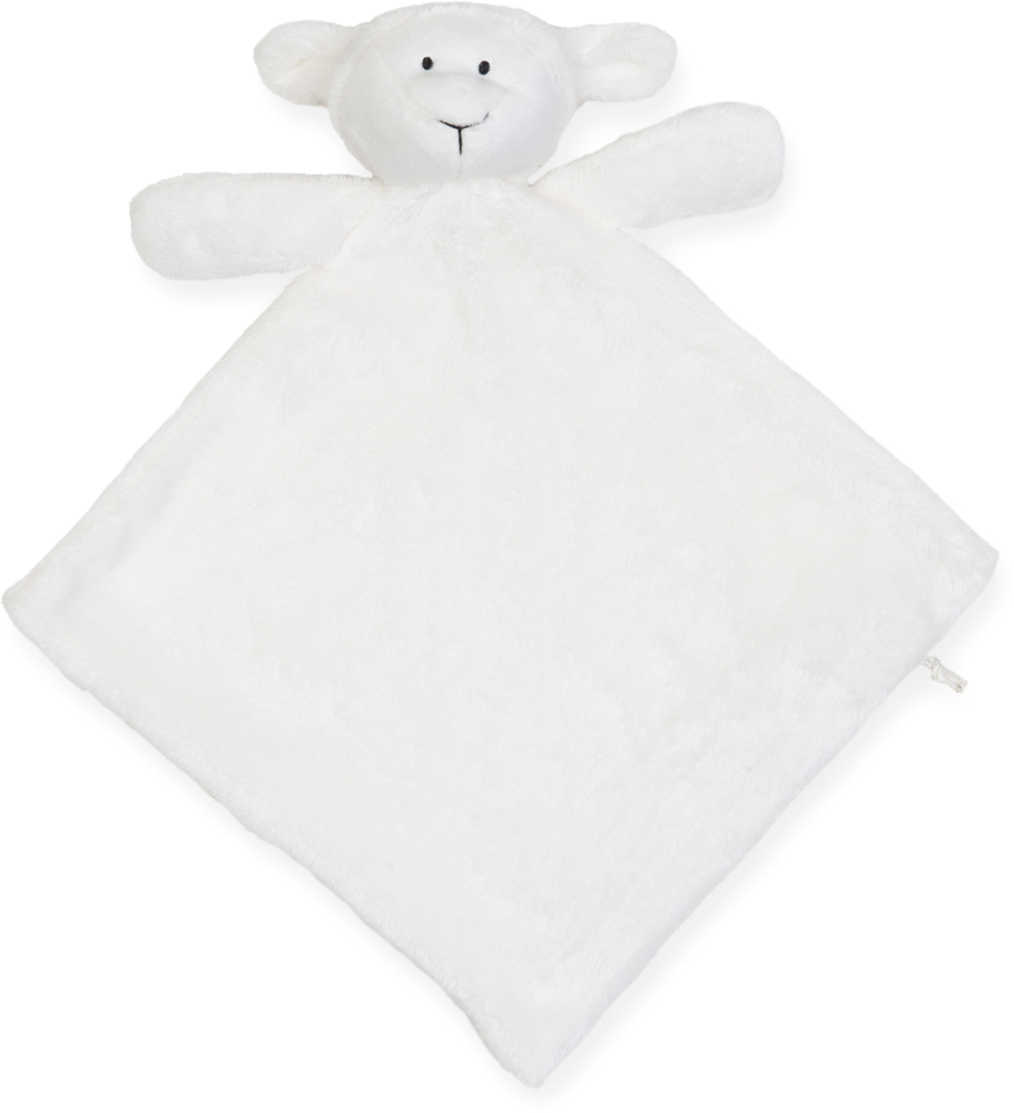 100% Polyester Plush. Crèmekleurig doekje met lammetje. Vierkant en dubbele stof. Rits om te personaliseren. Geschikt voor kinderen van alle leeftijden. Voldoet aan EN71 Europese speelgoedrichtlijn regelgeving.