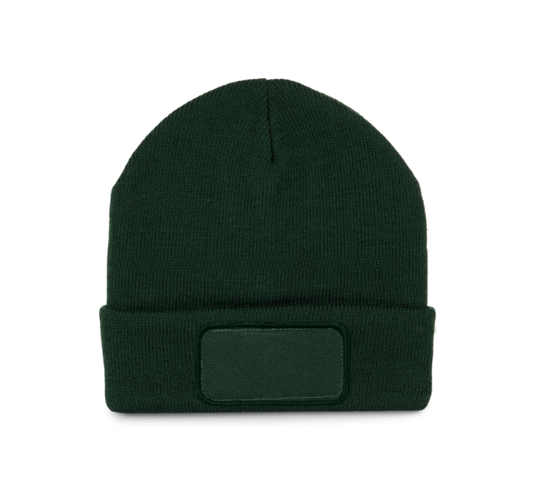 100% acryl. Gebreide muts met omslag in zacht acryl. Katoenen patch aan de voorkant, voor eenvoudige personalisatie. Tear-away merklabel.