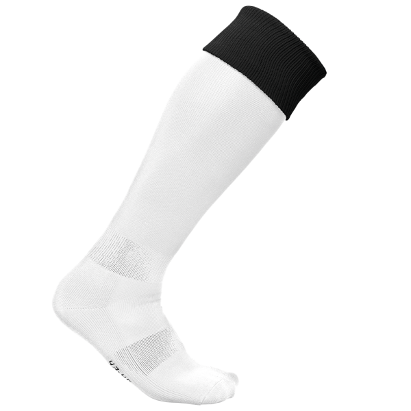 95% polyester / 3 %elastodieen / 2% elasthan. Elastische en contrasterende bovenzijde. Elastische anti-slipring aan de enkel. Sok met badstof aan de binnenkant.