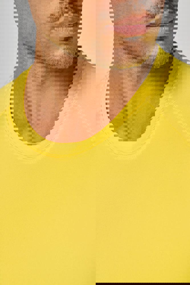88% polyester / 12% elasthan. Ronde hals. Overstiksels toon op toon. Afwerking met dubbele stiksels.meer